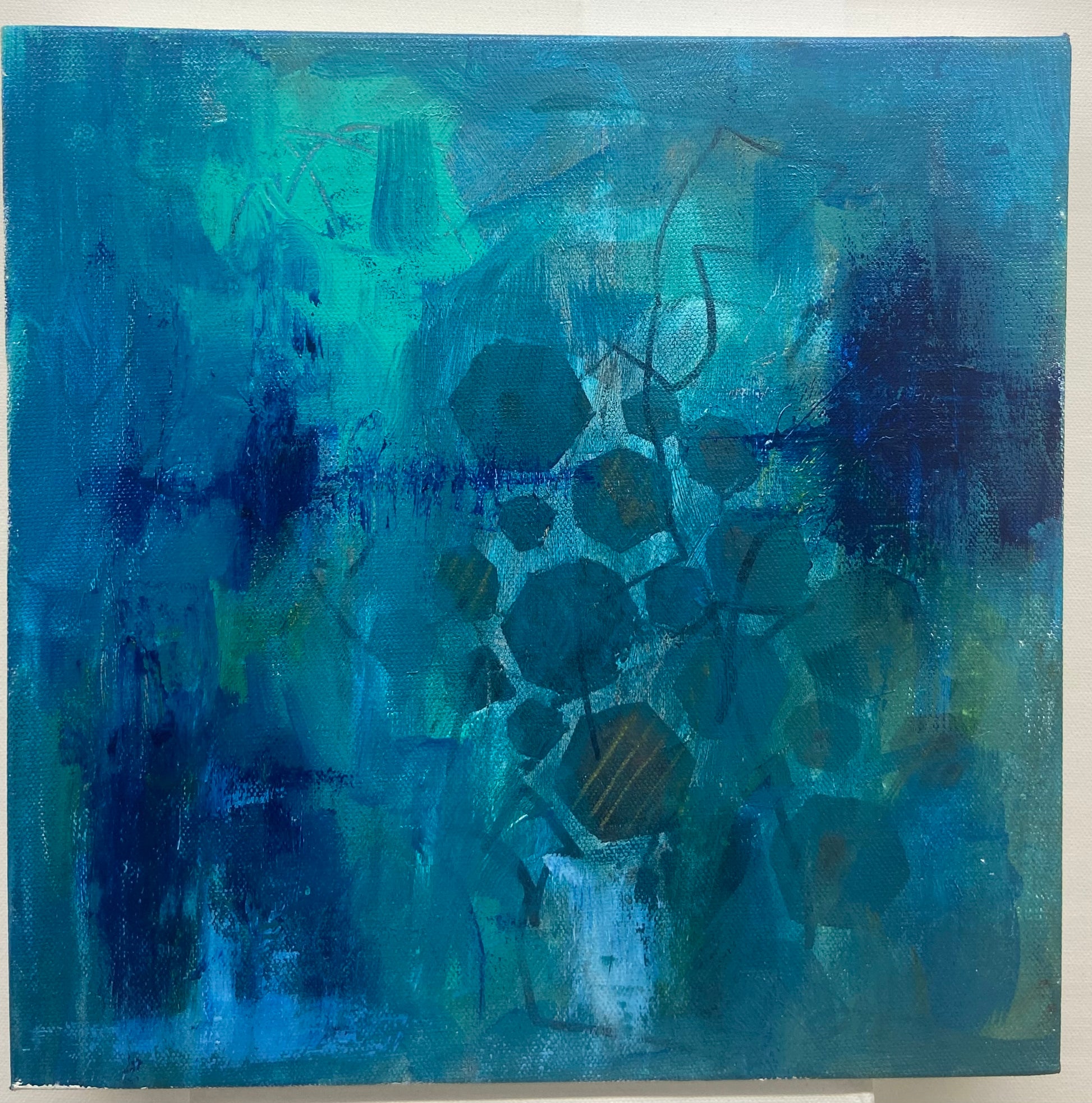 12”X 12” stretch canvas a beautiful blue peice that would warm up the room